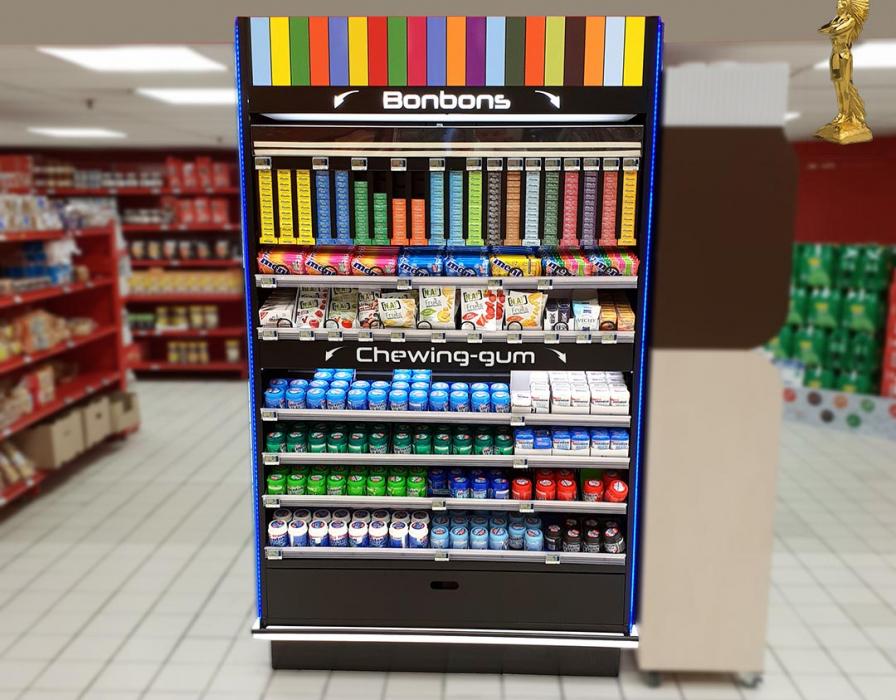 L'objectif principal du devant de caisse est d'offrir une présentation attrayante des produits d'impulsion tout en optimisant l'utilisation de l'espace près des caisses et aussi de laisser une dernière image positive des points de ventes.